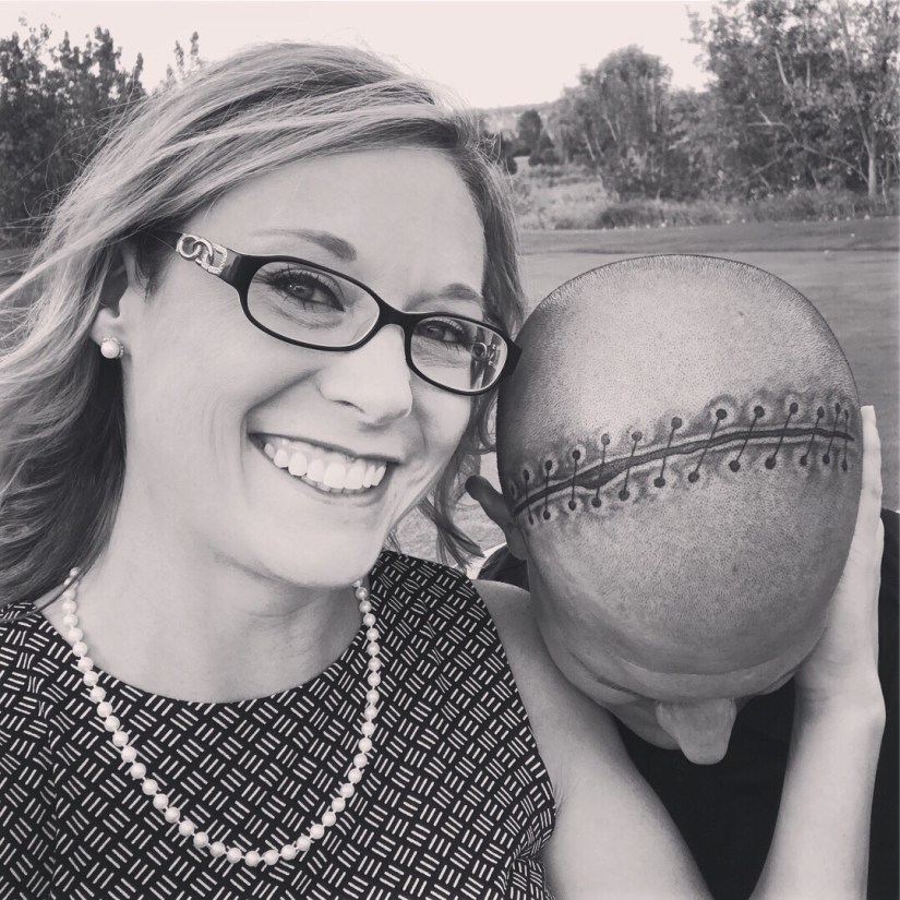 A few weeks after surgery, Josh told me, “everything they do to you, I’m doing to me.” That day, he had a replica of my incision tattooed on his own head.